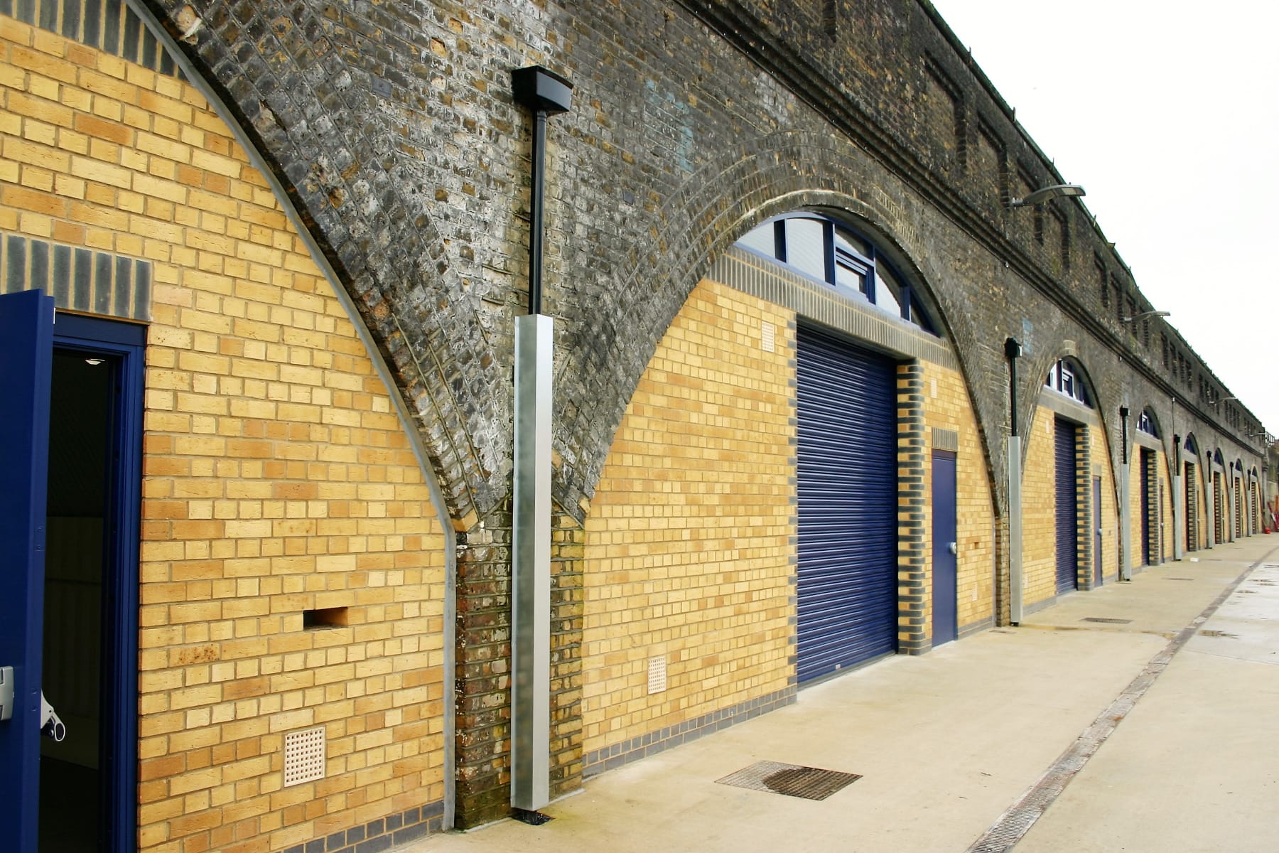 Complete refurbishment of entire site, to provide full refurbishment of 12 arches, to include new plumbing and sanitary installation, complete re-wire and electrical upgrade, new external brickwork, shutters and glazing with fully lined interiors.